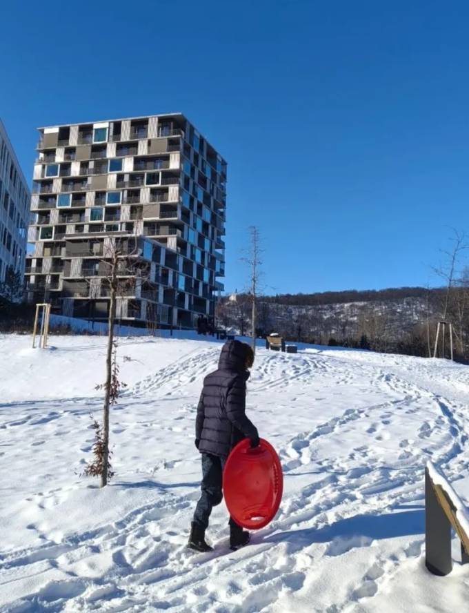 5. 5.‘체코댁’ 김지수, 프라하에서 눈썰매! 아이들 보다 신난 눈썰매 후드 패딩룩
