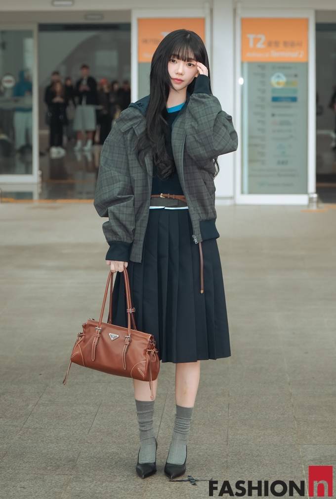 [패션엔 포토] 에스파 카리나, AI 같은 청순 비주얼...여성스러운 스쿨룩 밀라노 출국