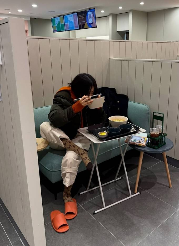 박하선, 만화방에서 실내화 신고 라면! 털털한 목동여신 숏패딩 출근 데일리룩
