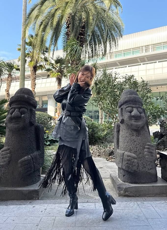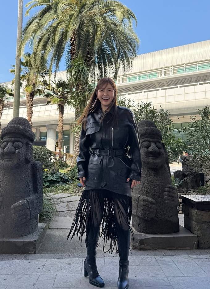 방송인 장영란이 프린지 스커트에 벨티드 레더 재킷을 매치한 핫한 출장룩으로 눈길을 사로잡았다.