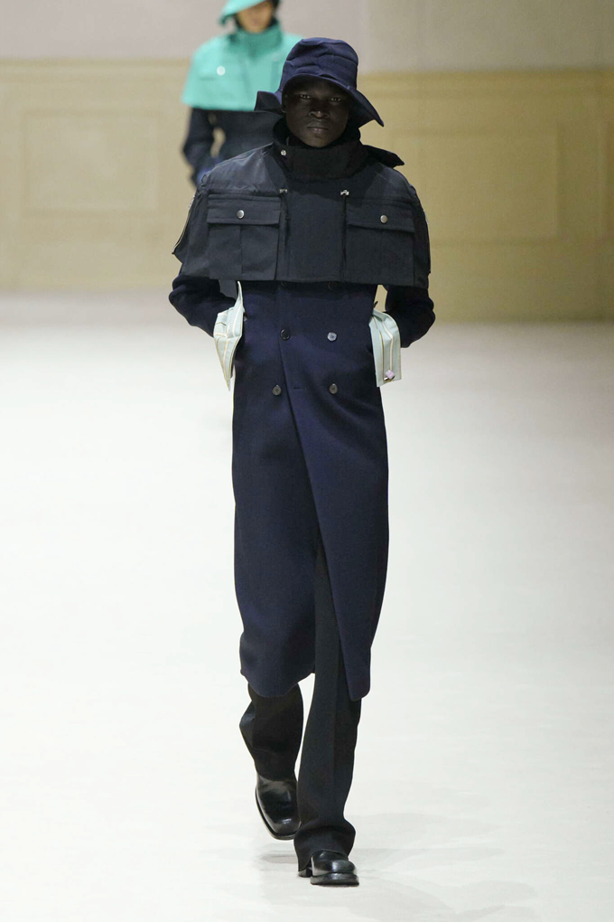 드레이핑된 니트웨어 아래로 긴 소매가 살짝 드러나고, 트렌치 코트 위에 걸친 화사한 컬러 케이프를 포함해 모자는 단연한 주인공으로 다양한 스타일, 모양 색상으로 등장했다.