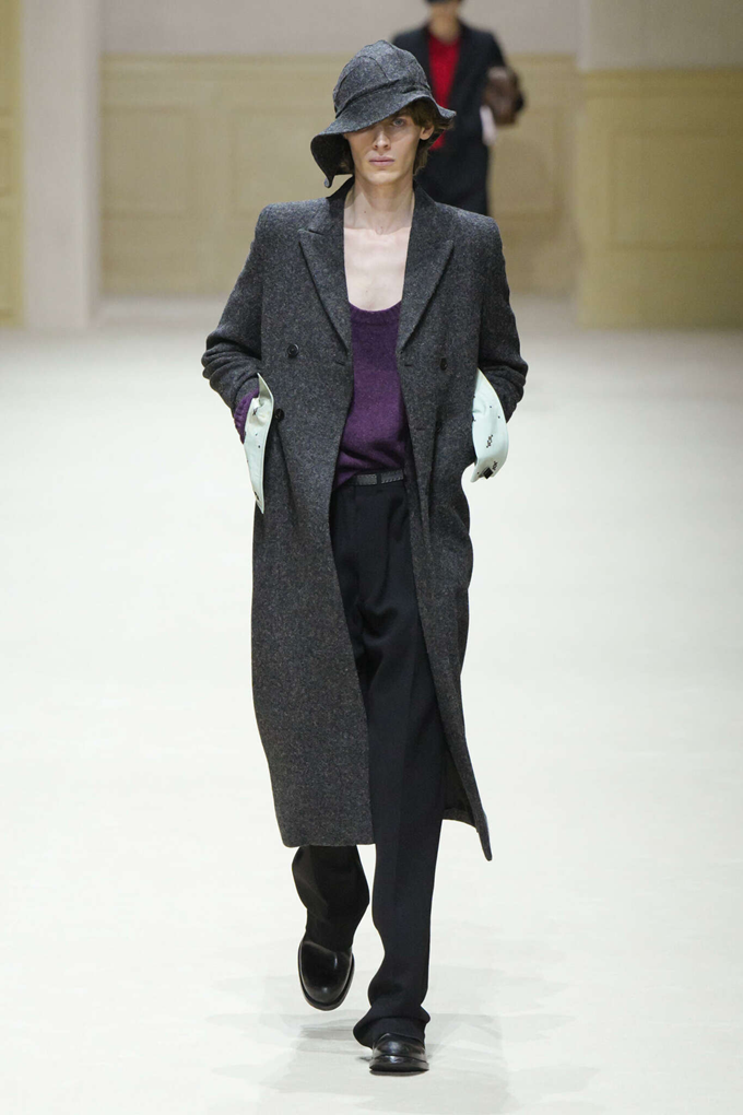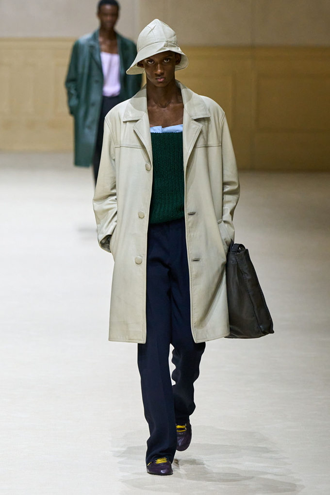 세련되고 아름다운 드레이핑이 돋보이는 니트웨어부터 드라마틱하고 슬림한 코트까지, 프라다 특유의 당당함과 세련미가 모든 룩에 깃들이 있으며, 익숙한 틀을 깨트린 신선한 하이브리드 조합은 새로운 감각의 결과물로 이어졌다.
