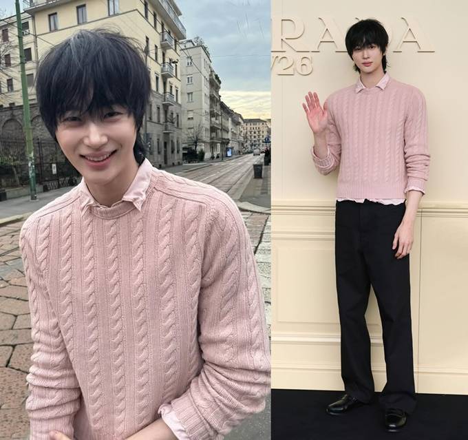 변우석, 밀라노 여심 올킬! 핑크 케이블 니트로 끝낸 프라다 패션위크 스타일