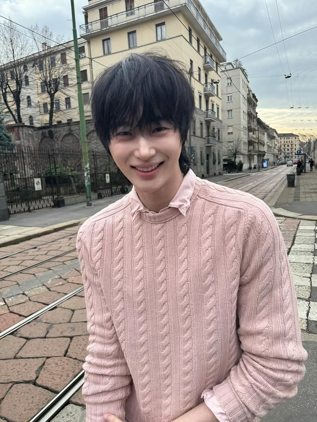 배우 변우석이 핑크 케이블 니트로 밀라노 여심을 흔들었다.