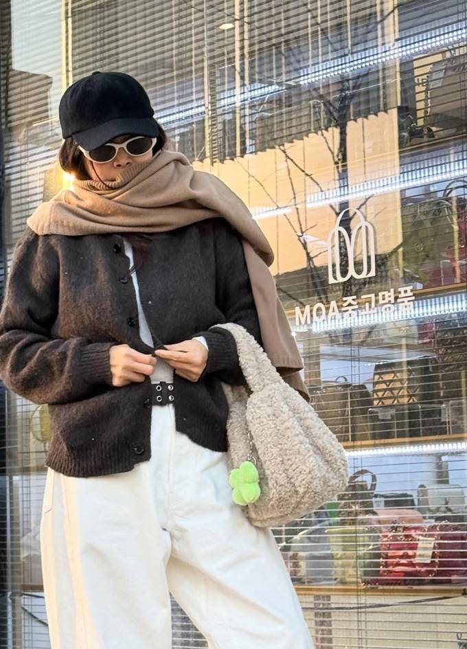 배우 황신혜가 비니와 머플러, 니트 카디건을 매치한 겨울 데일리룩으로 20대 같은 영한패션 스타일을 선보였다.