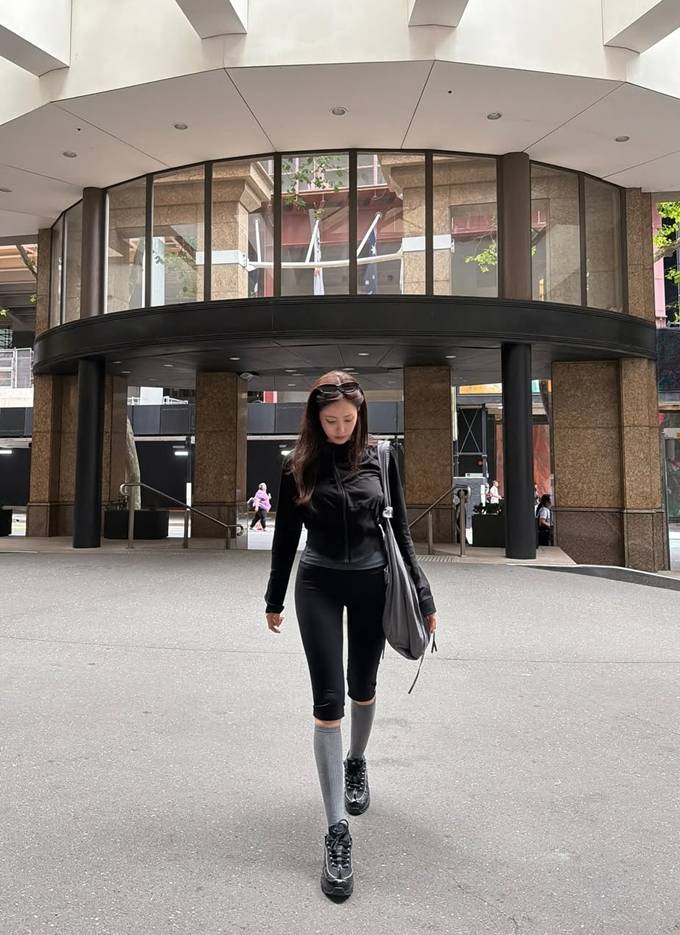 가수 효민이 호주 시드니에서 동네 마실 나온 듯 레깅스 핏 애슬레저룩으로 탄탄한 몸매를 뽐냈다.