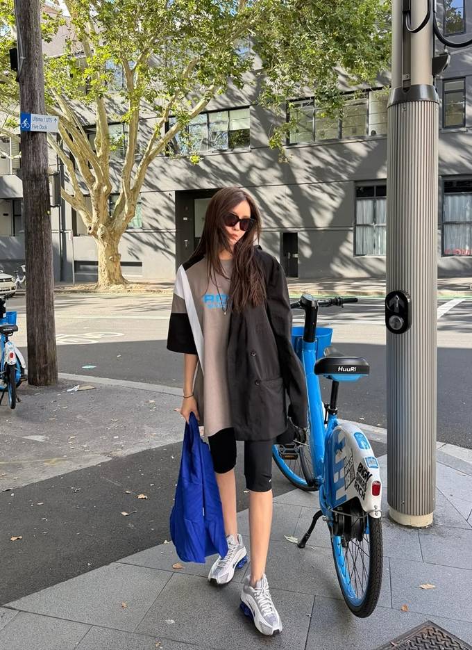 효민, 시드니 서리힐즈 한 바퀴! 동네 마실 나온 듯 탄탄 몸매 레깅스 애슬레저룩