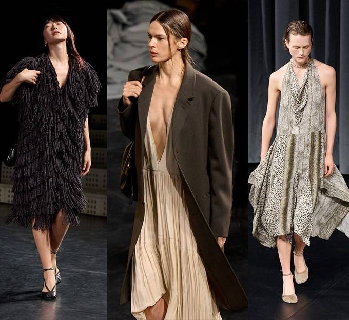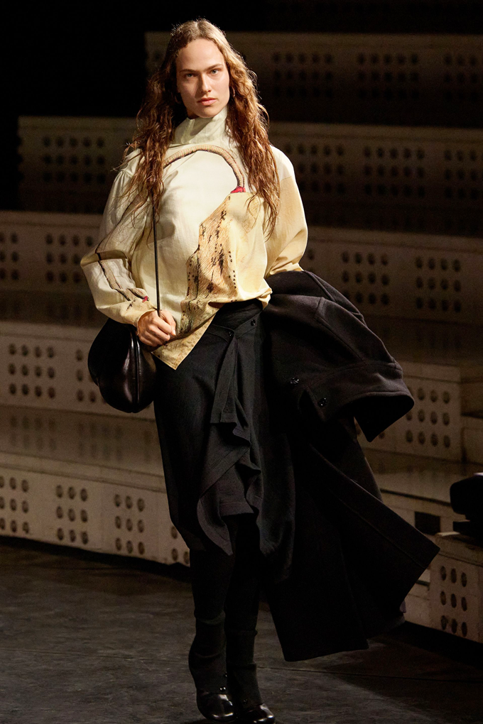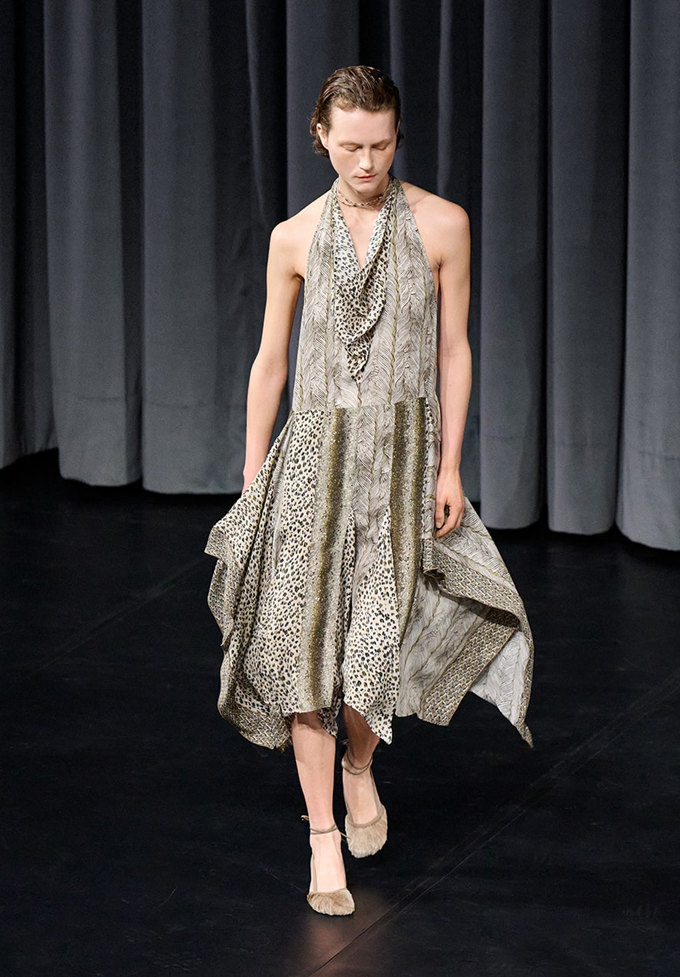 이번 컬렉션은 르메르 특유의 섬세한 주름, 비대칭 드레이핑, 그리고 하늘거리는 테일러링을 새로운 차원으로 끌어올린 의상들을 선보이며 마치 그림 같은 장면을 연출했다.