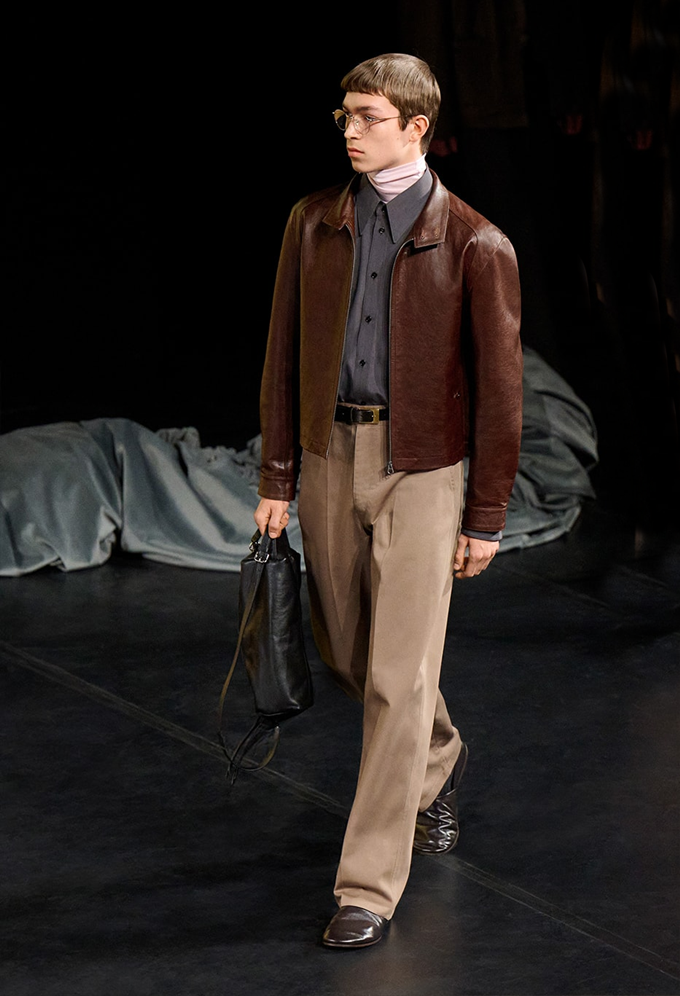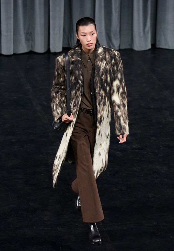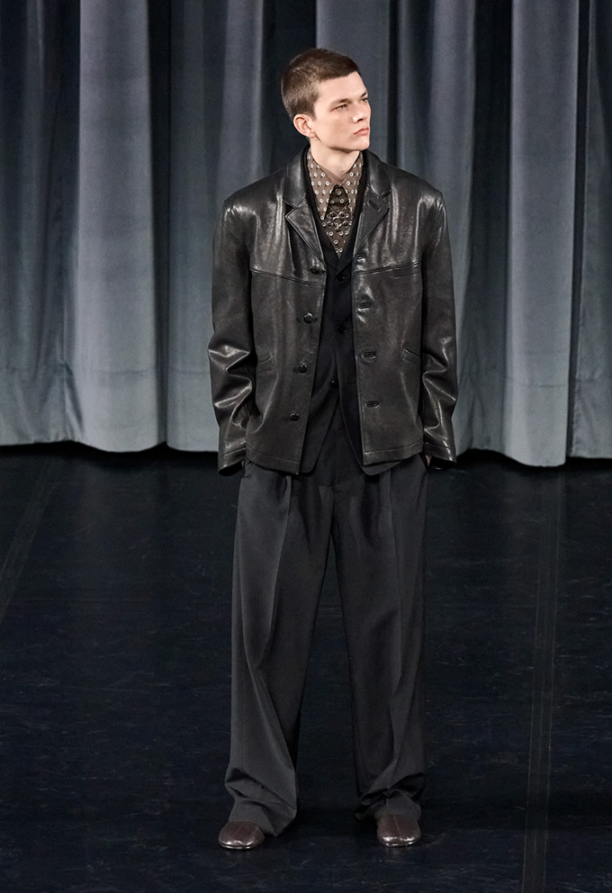 남성복은 부츠컷 테일러링에 사슴 가죽 스타일의 아우터와 가죽 부츠를 레이어드하는 등 대체로 서부적인 분위기를 풍겼지만, 부드러운 송아지 가죽으로 만든 만다린 재킷처럼 동양적인 느낌의 아이템도 눈에 띄었다.