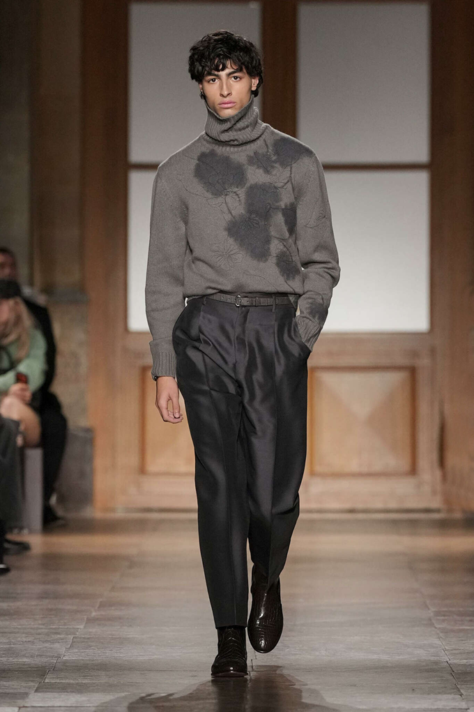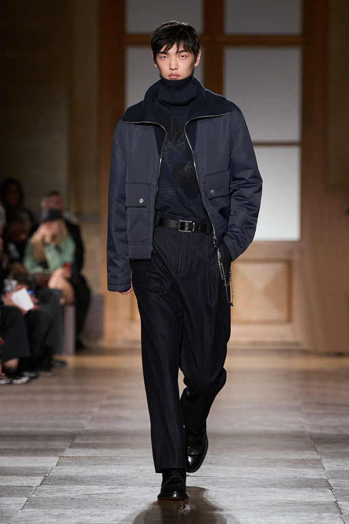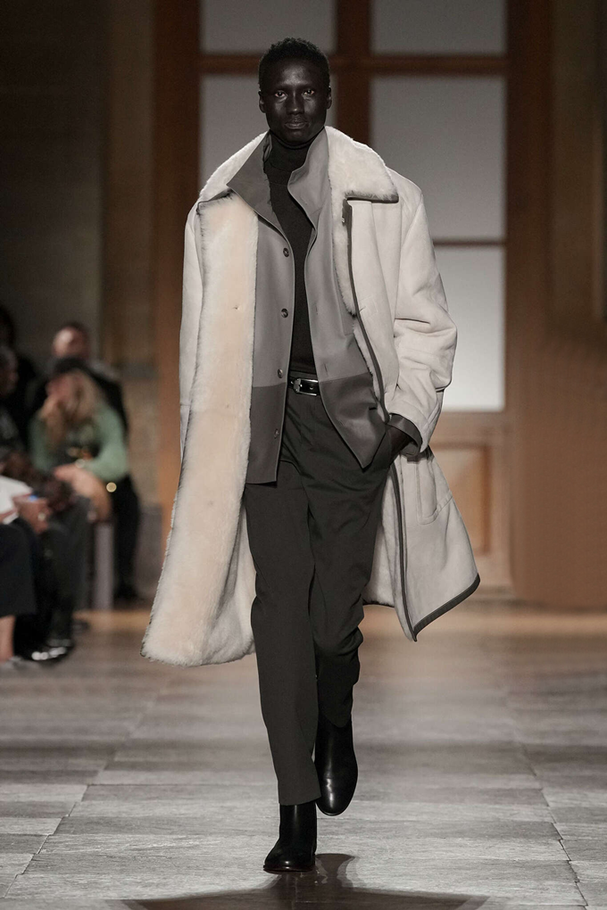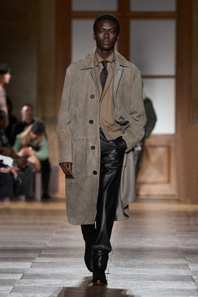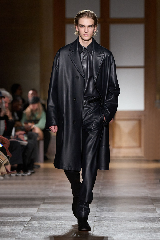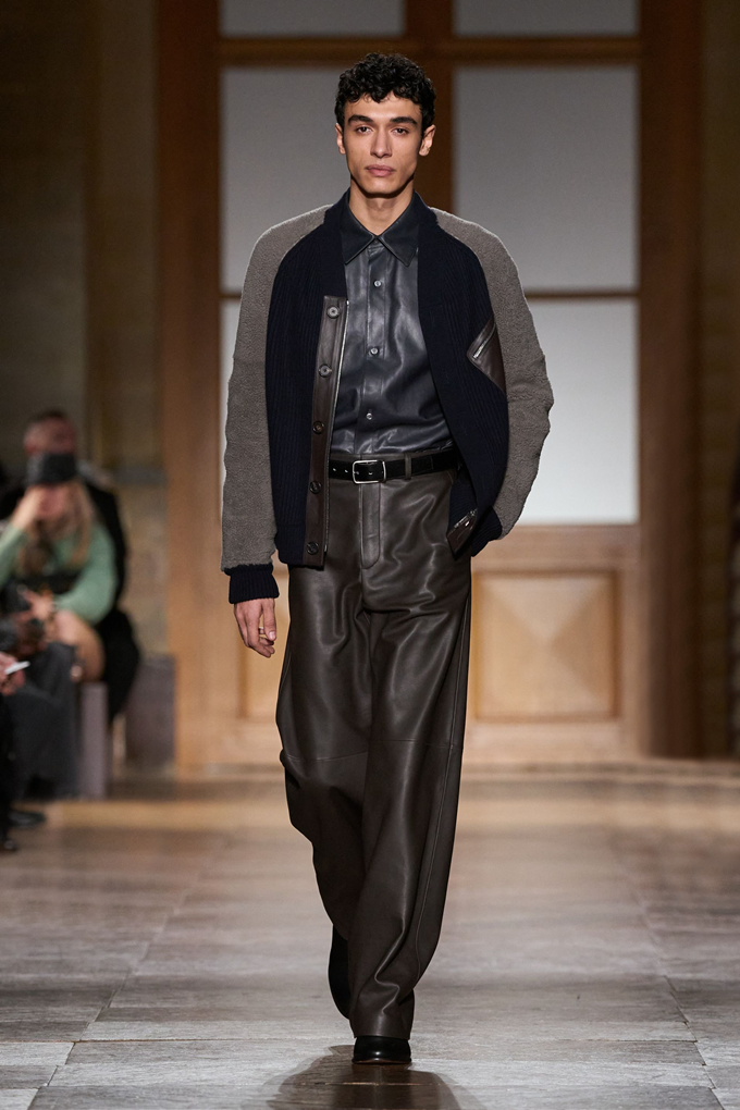 남성복의 전형적인 아이템 블루종, 파카, 피코트, 더블 브레스트 수트를 비롯해 지난 시즌 실루엣을 차용해 에르메스 특유의 최고급 소재로 자연스러운 스타일을 연출했다.
