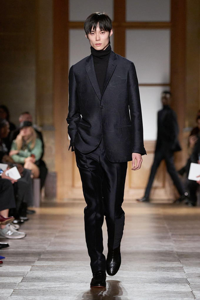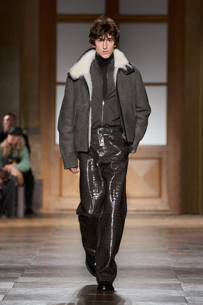 특히 이번 컬렉션은 양털 소재가 주인공으로 등장했으며 광택 있는 카키색 악어가죽 수트는 강렬한 인상을 남겼다.