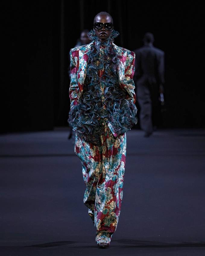 준지의 런웨이는 검은 턱시도 라인의 의상으로 시작하여, 이탈리아의 모터 스포츠 브랜드 알파인스타즈(Alpinestars)와 협업한 바이커룩으로 마무리됐다.