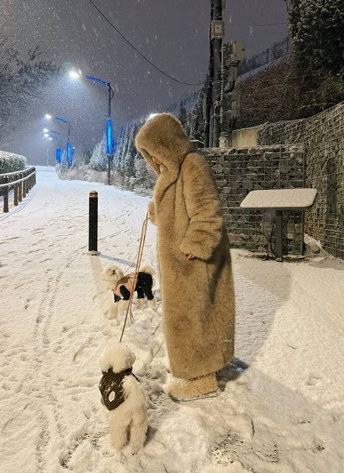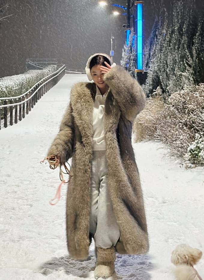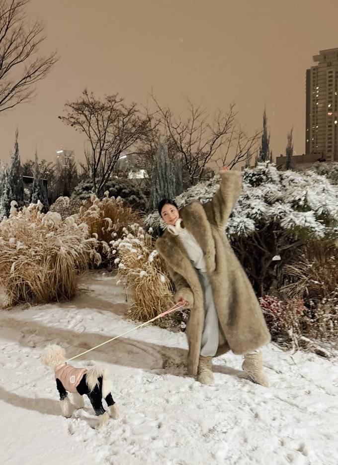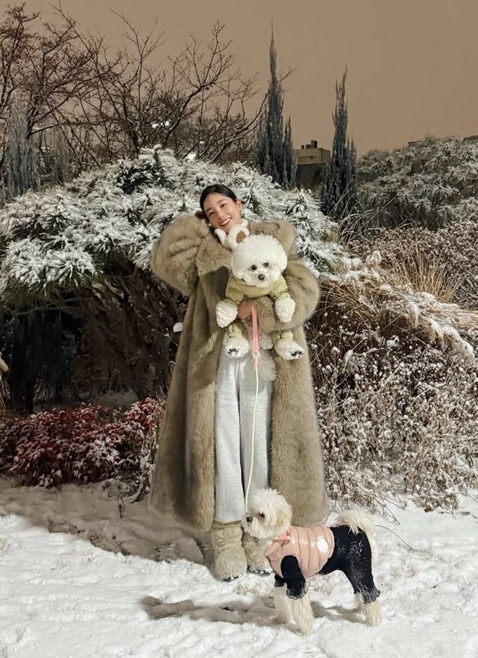 기은세는 24일 자신의 채널에 “눈 왔던 어제 눈사람 드디어, 무거워 다신 안 입을 곰코트를 입고 귀염둥이들과 ❤”라는 글고 함께 반려견과 눈밭 산책을 즐긴 사진을 게재했다.