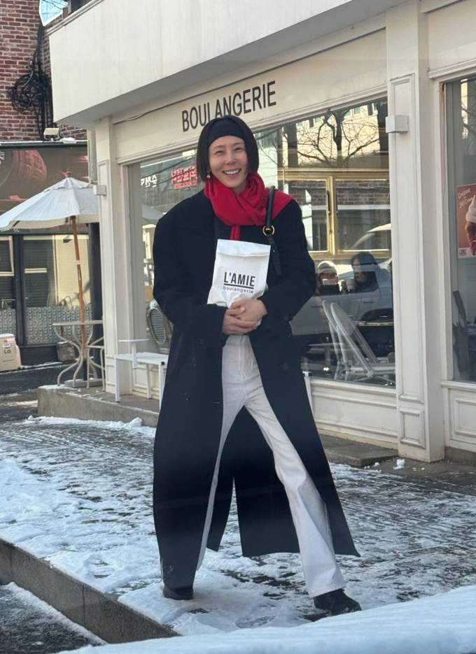 공개한 사진에서 김나영은 블랙 롱 코트에 강렬한 레드 컬러의 머플러와 짧은 헤어 스타일을 정리한 헤어 밴드를 매치해 단정하면서도 감각적인 외출 스타일을 완성했다.