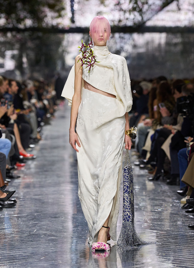 과거의 기법을 현재로 소환하고 이를 다시 미래로 확장하는 꾸뛰르는 자연과 시간, 그리고 하우스의 유산을 현대적인 시선으로 재해석한 것이 특징이다.