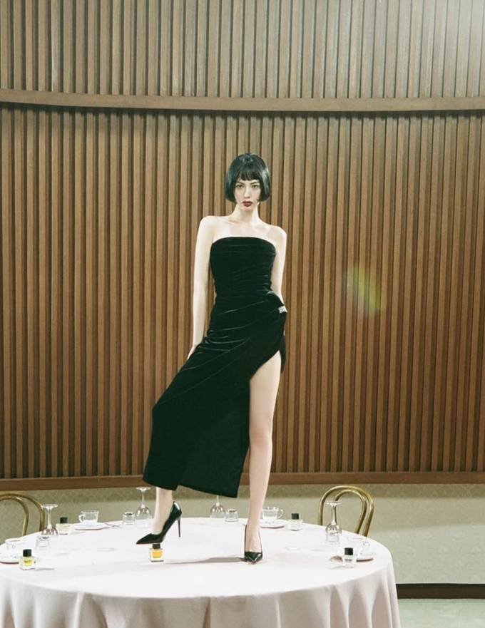 배우 나나가 튜브톱 하이슬릿 블랙 드레스룩으로 한 편의 영화 같은 도발적인 고혹미를 발산했다.