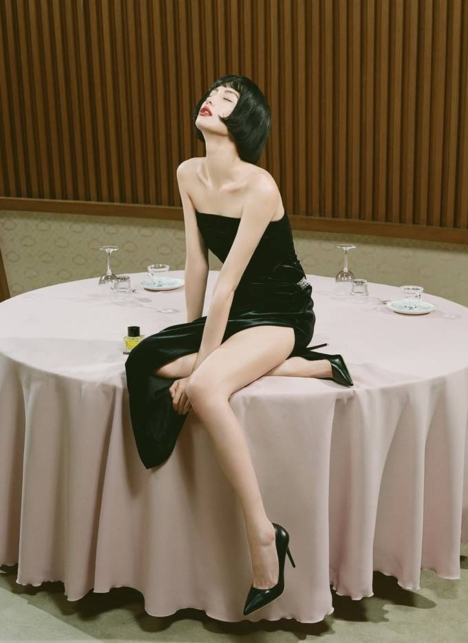 4. 4.나나, 한 편의 영화 같은 도발 고혹미! 하이슬릿 튜브톱 블랙 드레스룩