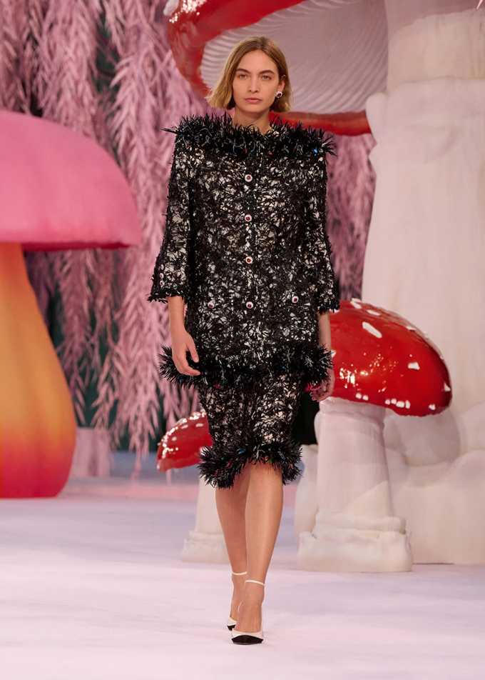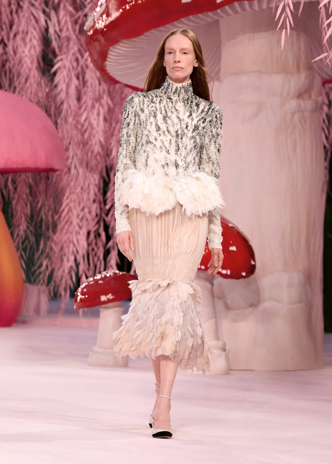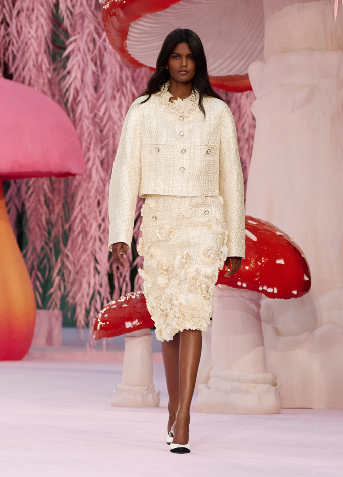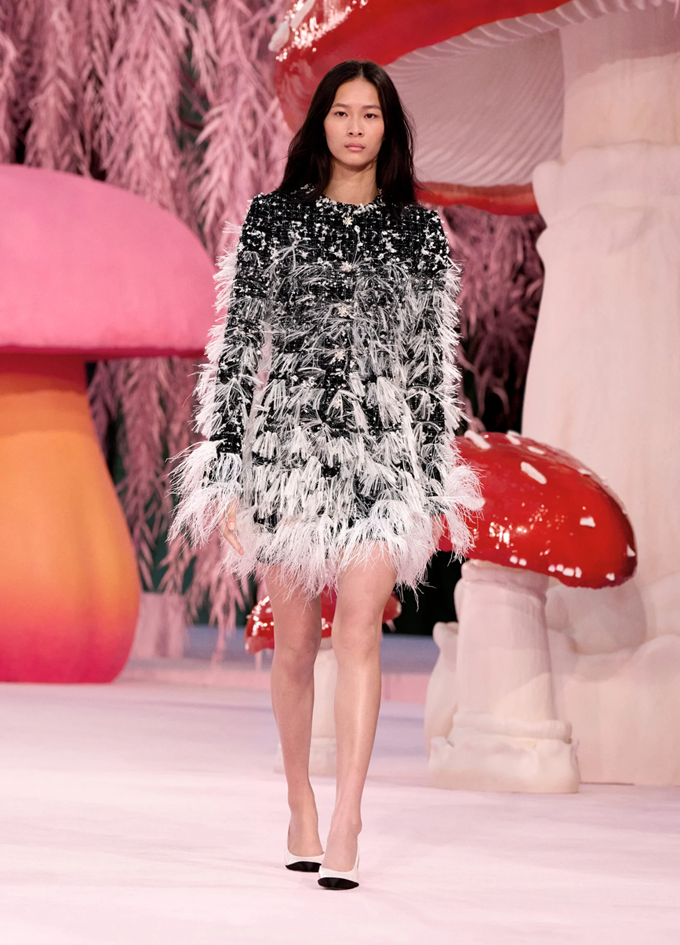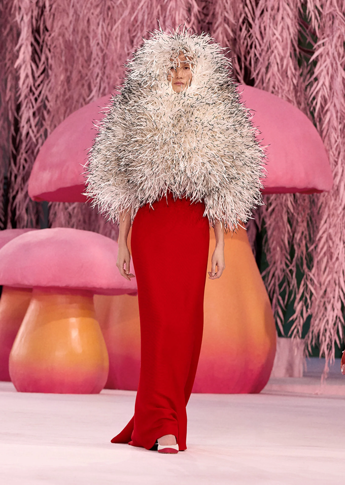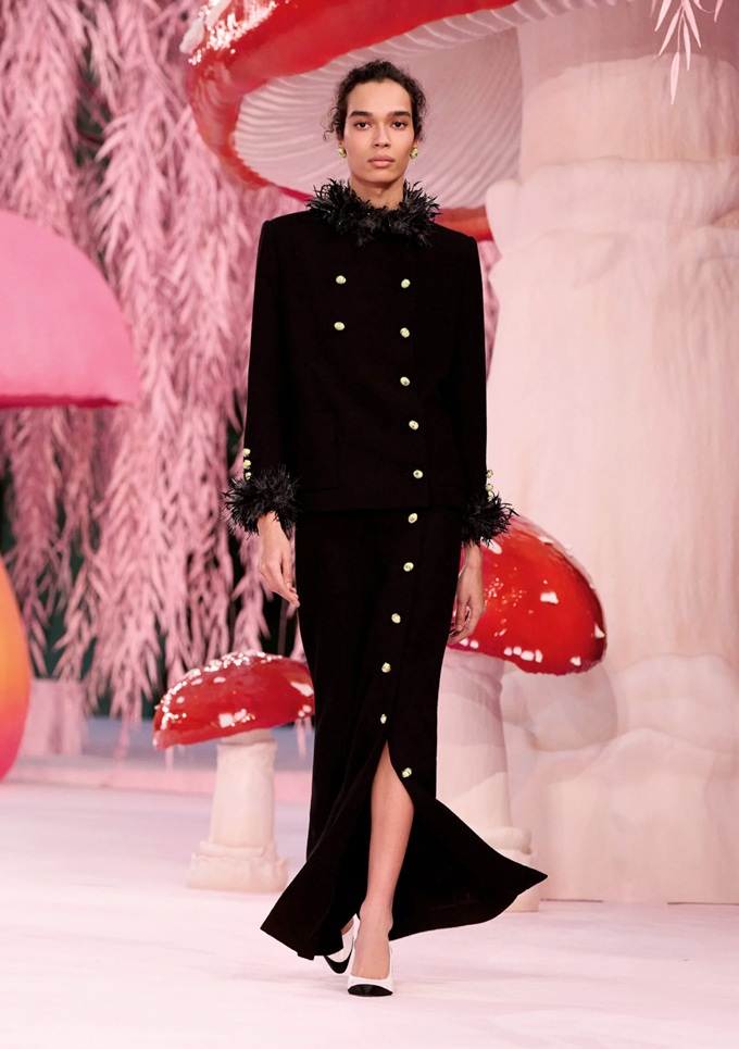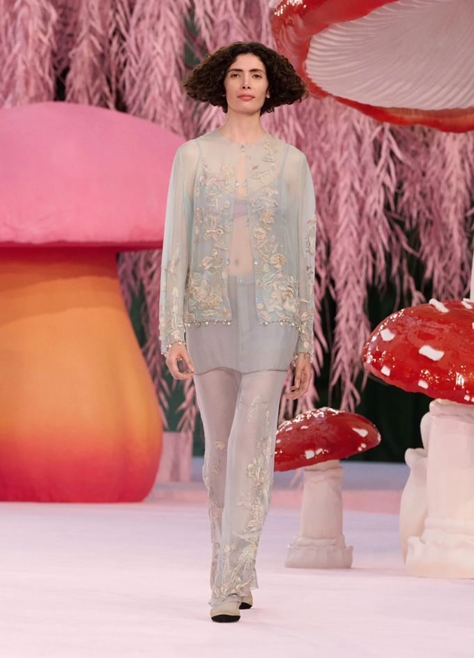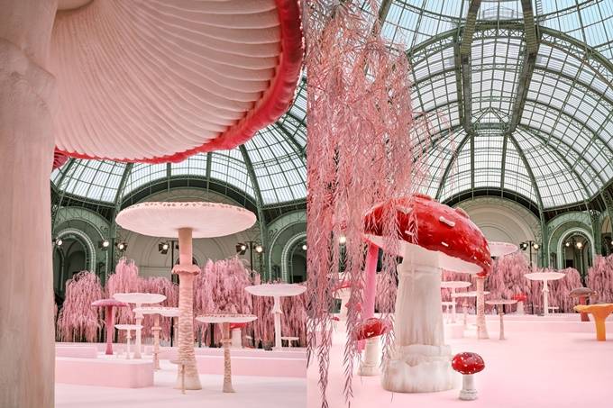 샤넬 크리에이티브 디렉터 마티유 블라지(Matthieu Blazy, 41)는 이번 첫 오뜨꾸띄르 컬렉션에서 다양한 종류의 버섯 조형물로 장식된 신비롭고 환상적인 런웨이 무대를 선보였다.
