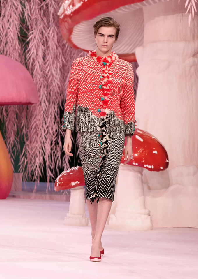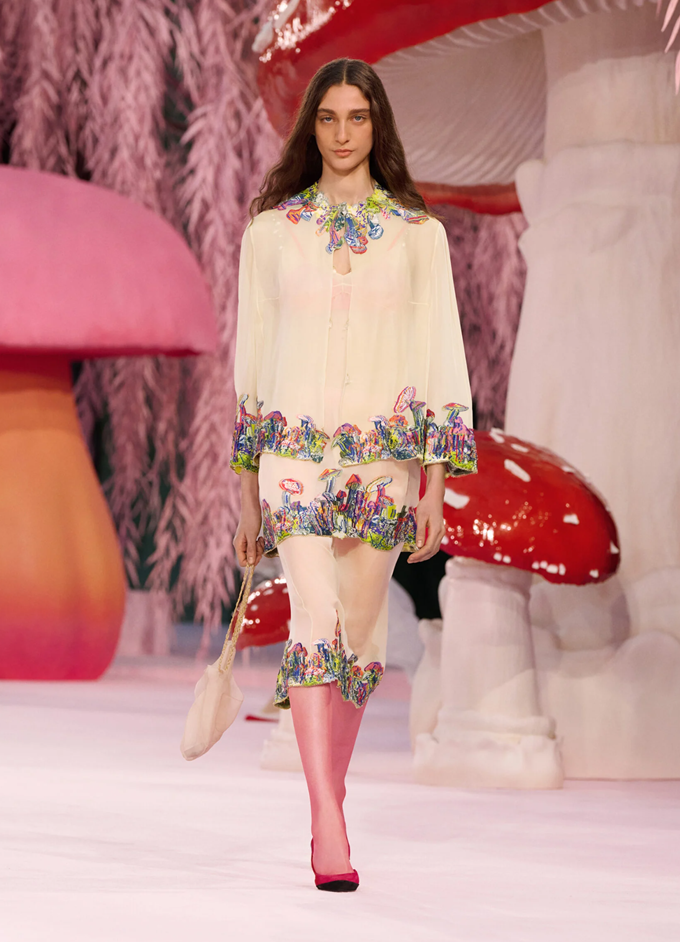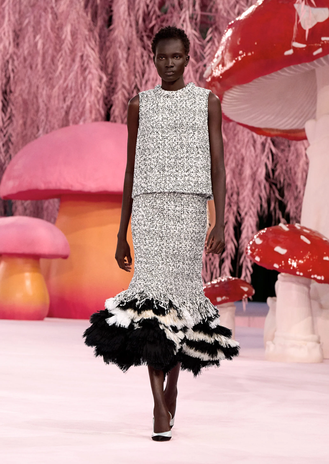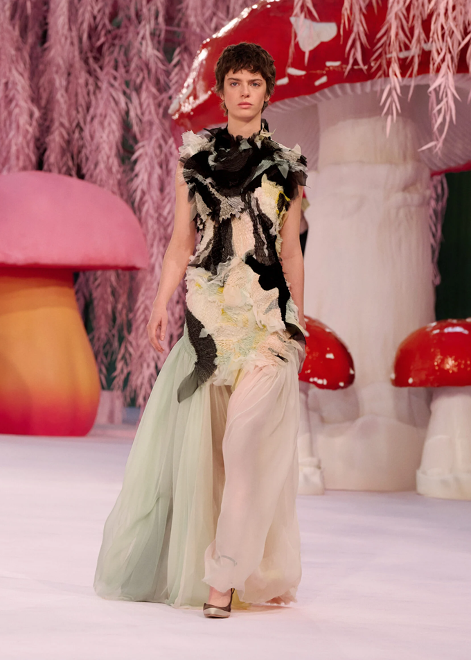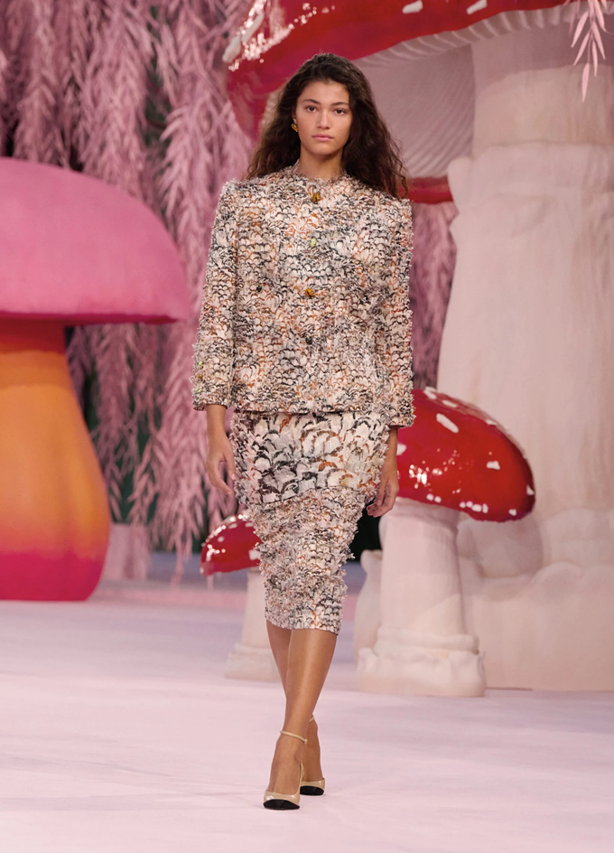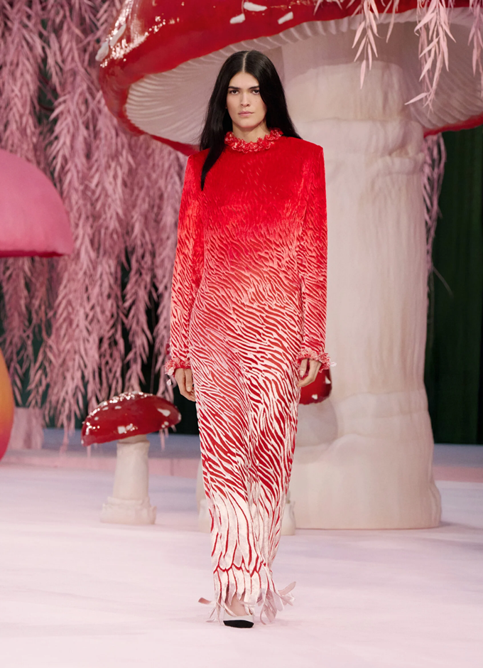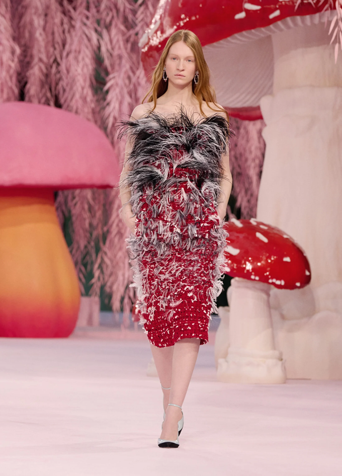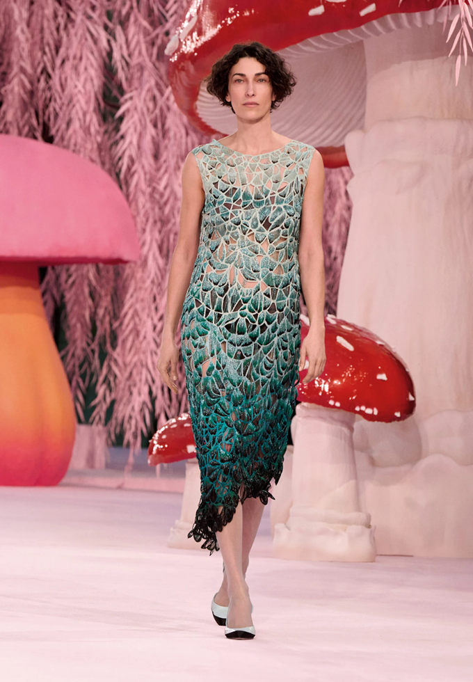 샤넬 크리에이티브 디렉터 마티유 블라지(Matthieu Blazy, 41)는 이번 첫 오뜨꾸띄르 컬렉션에서 다양한 종류의 버섯 조형물로 장식된 신비롭고 환상적인 런웨이 무대를 선보였다.