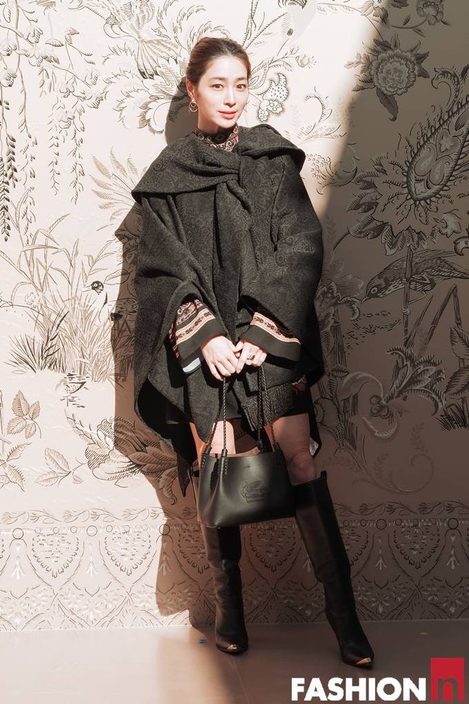 배우 이민정이 케이프 코트와 롱부츠로 우아한 강남 나들이룩을 선보였다.