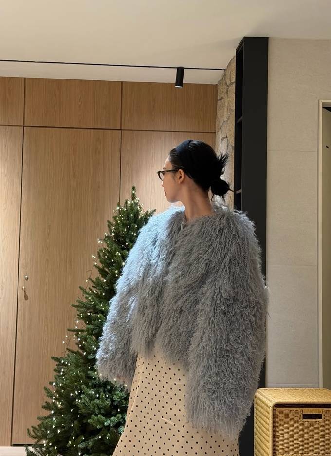카리나는 볼륨감이 살아 있는 그레이 톤의 퍼 재킷에 블랙 컬러의 두툼한 머플러를 두르고, 화이트 이너와 도트 패턴 스커트를 매치해 러블리하면서도 포근한 여행룩을 완성했다.