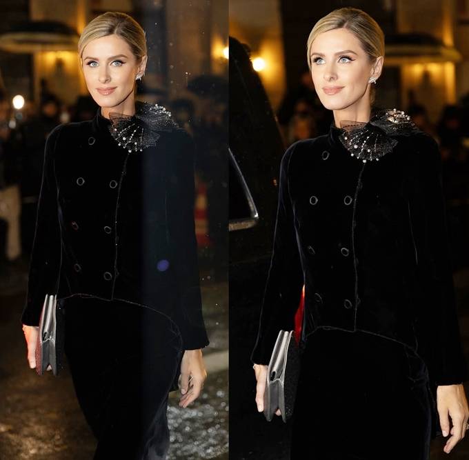 공개한 사진에서 니키 힐튼은 단정하게 묶은 헤어 스타일에 몸에 밀착된 벨벳 소재의 하이넥 재킷과 롱 스커트의 투피스 드레스룩으로 우아하면서도 럭셔리한 미모를 발산했다.