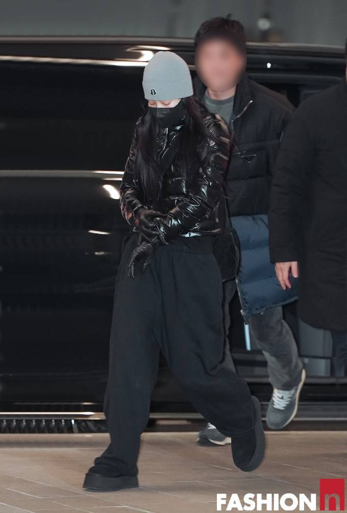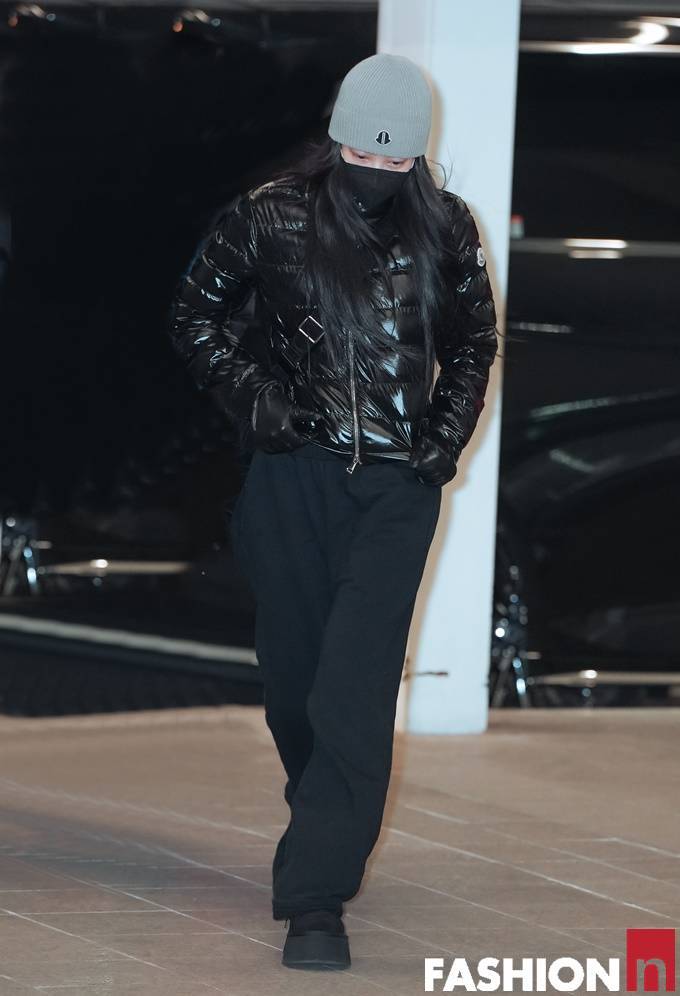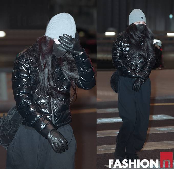 그룹 블랙핑크(BLACKPINK) 멤버 제니(JENNIE)가 광택감 있는 퀼딩 패딩룩으로 힙한 공항패션을 선보였다.