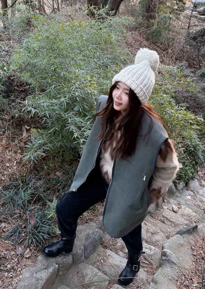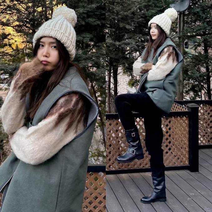 공개한 사진에서 채정안은 따뜻하고 포근한 니트 스웨터에 그린 컬러의 집업 베스트 재킷을 입고 방울이 달린 니트 비니를 매치한 산책룩으로 멋스러운 레이어드 스타일을 선보였다.