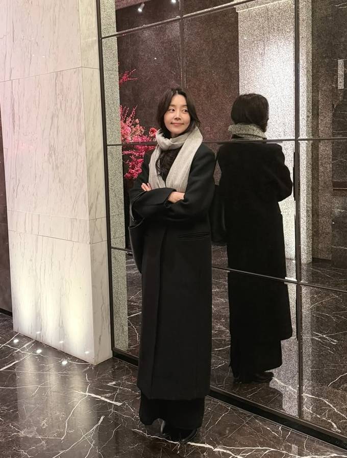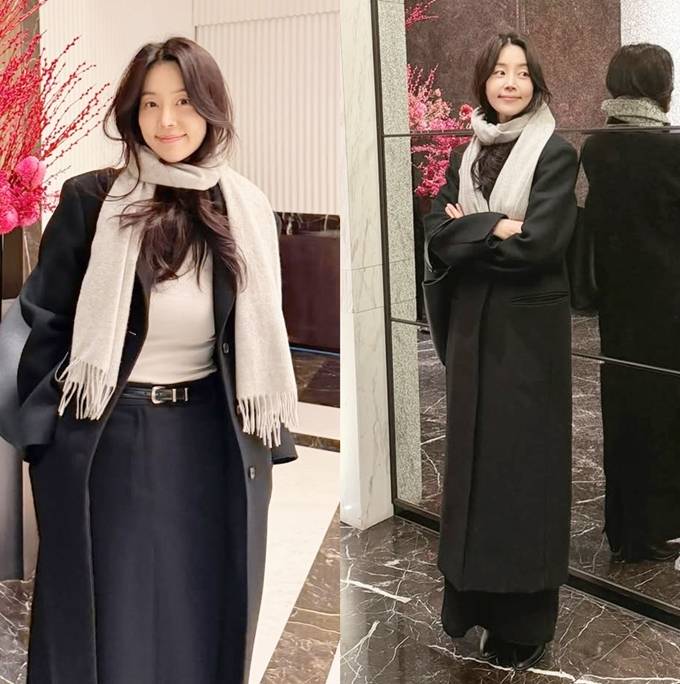배우 한지혜가 롱 스커트에 롱 코트의 시크한 얼죽코룩으로 단아한 시크미를 발산했다.