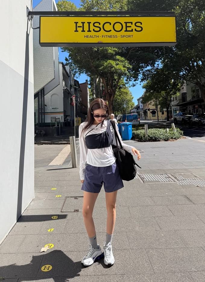 여기에 네이비 컬러의 쇼츠를 매치해 활동적인 시드니의 분위기와도 자연스럽게 어우러졌다.