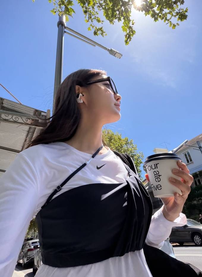 가수 효민이 호주 시드니에서 감각적인 슬리브리스 톱 레이어드 스트릿룩으로 잇걸 다운 존재감을 드러냈다.