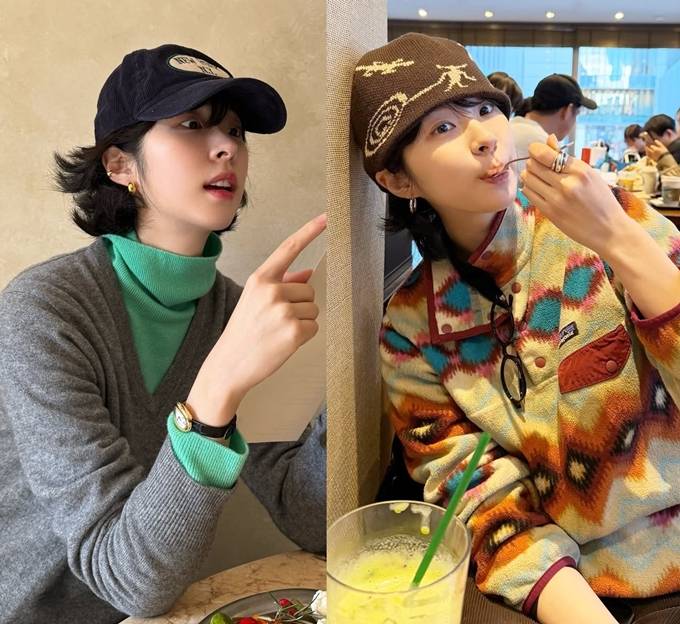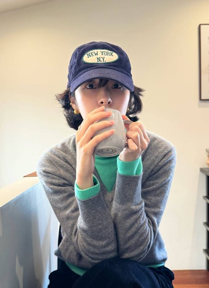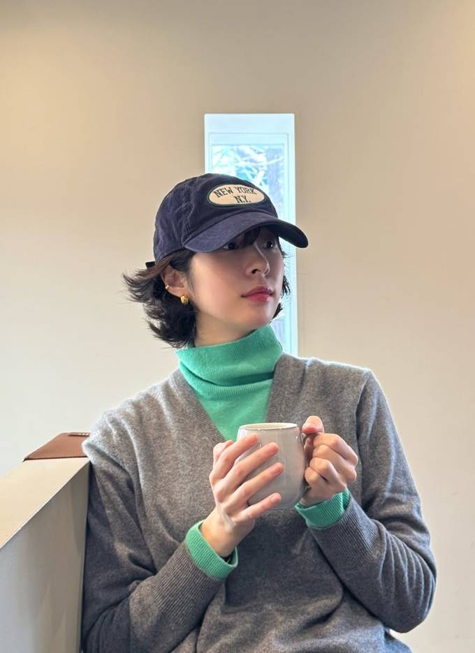 서은수는 그레이 니트 톱에 그린 컬러 이너를 레이어드한 스타일은 차분하면서도 생기 있는 분위기를 동시에 연출한다. 여기에 캐주얼한 볼캡을 더해 편안한 무드를 살리며, 숏컷 헤어의 보이시한 매력을 자연스럽게 강조했다.