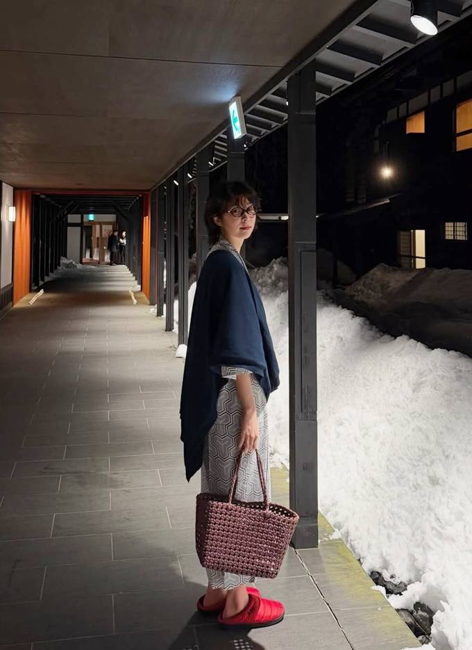 반면 컬러감이 살아 있는 패턴 플리스 재킷과 브라운 톤의 니트 비니가 조화를 이룬 스타일로 한층 자유롭고 트렌디한 무드를 자아냈다.