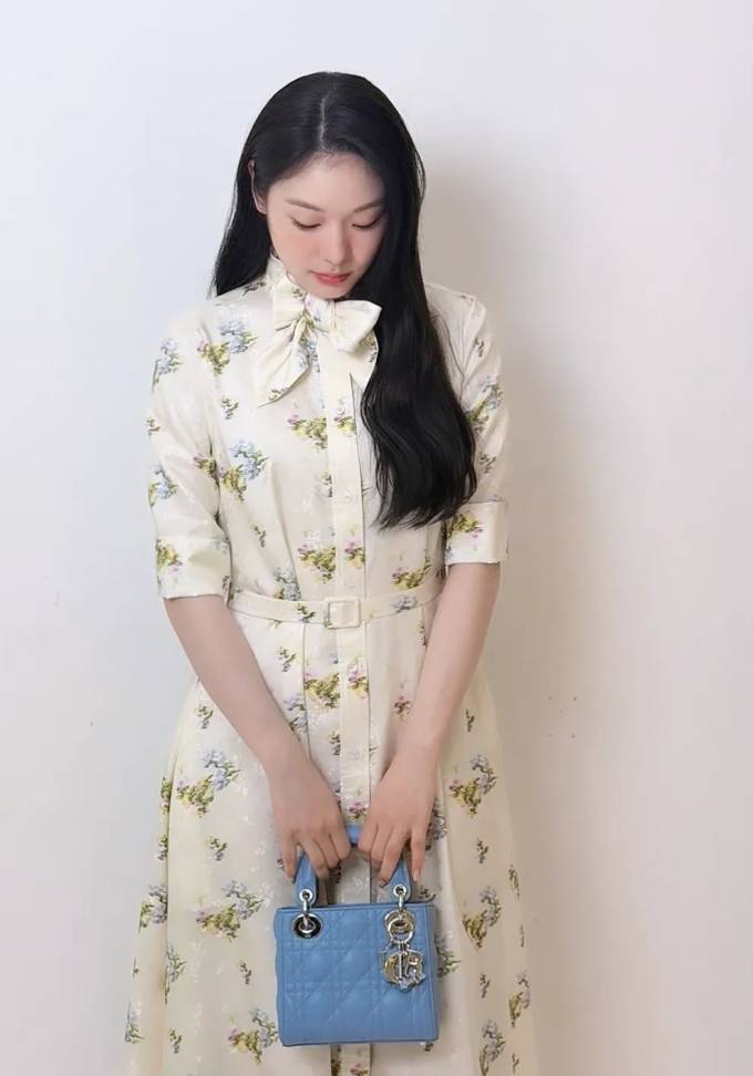 3. 3.김연아, 먼저 맞은 봄날! 우아한 꽃무늬 플레어 실루엣 플로럴 리본 원피스룩