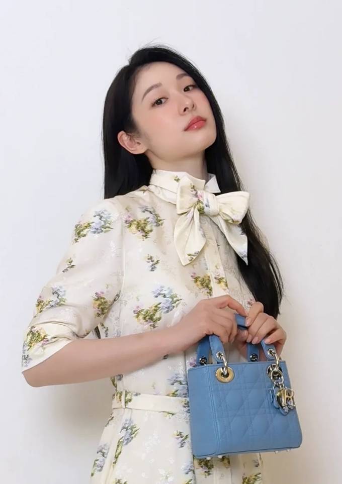 여기에 파스텔 톤의 블루 컬러 미니 백을 매치해 봄 느낌을 한 스푼 더했다.