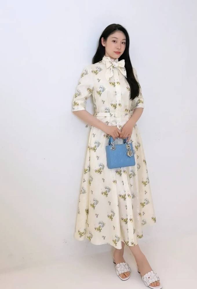 김연아, 먼저 맞은 봄날! 우아한 꽃무늬 플레어 실루엣 플로럴 리본 원피스룩
