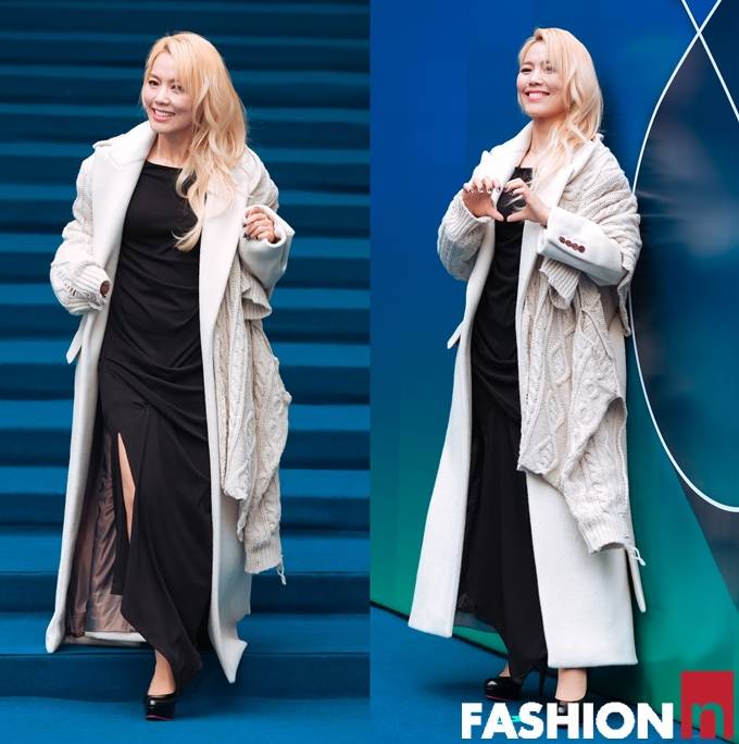 이날 소향은 아이보리 코트 위에 같은 컬러의 케이블 니트 카디건을 걸친 레이어드 스타일에 이너로 하이슬릿 블랙 롱 원피스를 착용한 패션쇼 나들이룩으로 스타일리시한 면모를 드러냈다.