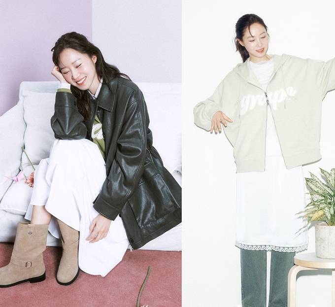 은은한 광택과 유연한 질감의 레더 봄버 재킷부터 자수 디테일로 포인트를 준 그레이프 후드 집업, 아우터로도 활용 가능한 타탄 체크 패턴의 체크 오버사이즈드 셔츠 등 다양한 아이템을 활용해 세련된 봄 스타일링이 눈길을 끌었다.