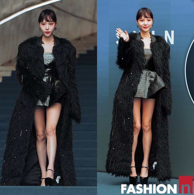이날 이열음은 늘씬한 각선미가 드러난 튜브톱 미니 원피스에 블랙 퍼 롱 코트를 매치한 아방가르드한 드레스룩으로 DDP를 흔들어 놓았다.