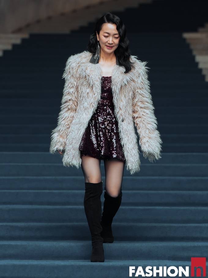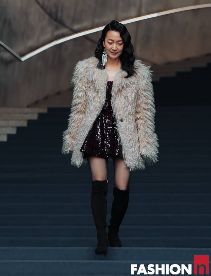 배우 김주령이 복실복실 보기만해도 포근한 페이크 퍼 코트룩으로 DDP 패션위크를 밝혔다.
