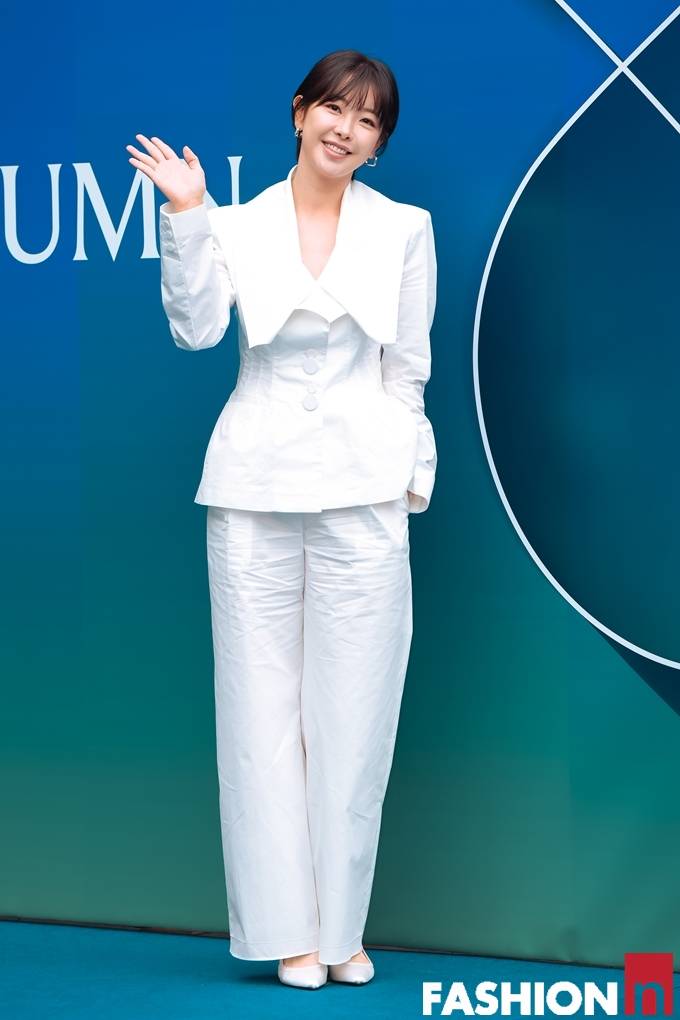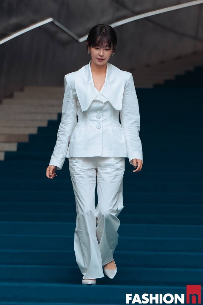 이날 고원희는 빅 카라가 눈에 띄는 화이트 재킷에 화이트 팬츠를 매치한 올 화이트 슈트룩으로 단아하면서도 세련된 스타일을 선보였다.