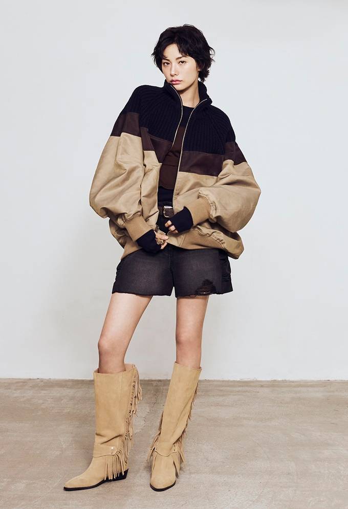 공개된 화보 속 나나는 블랙 테일러드 재킷과 데님 팬츠를 매치해 절제된 실루엣 속에 자연스러운 긴장감을 더했으며, 레더 아우터와 롱 브라운 스커트, 팬츠 레이어드 조합으로 도시적인 무드를 완성했다.