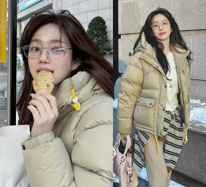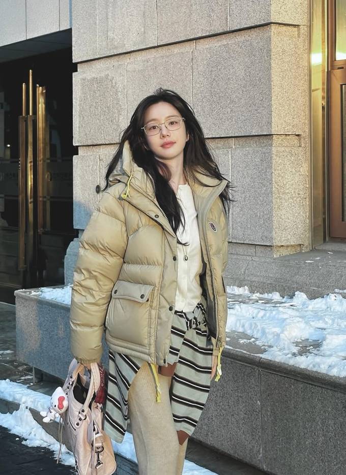 공개한 사진에서 이유비는 볼륨감이 있는 베이지 톤의 숏패딩으로 포근한 겨울 감성을 살렸다.