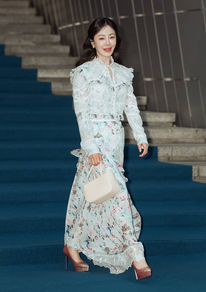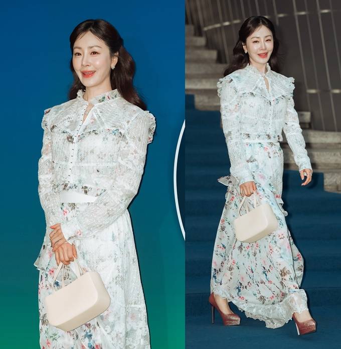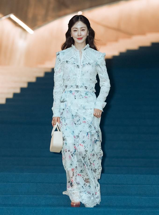 배우 오나라가 하늘하늘한 꽃무늬 러플 드레스룩으로 서울 패션위크를 밝혔다.