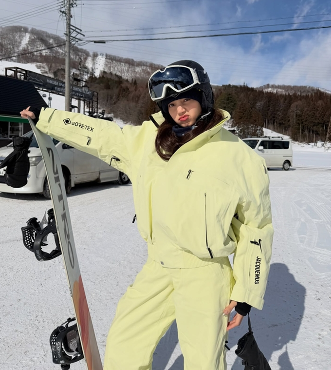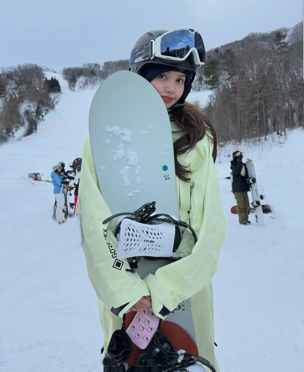 사진 속 리사는 연노란색 스키복을 입고 스노보드 장비를 즐기고 눈 덮인 산을 배경으로 곤돌라를 타고 이동하며 찍은 셀카도 공개했다.