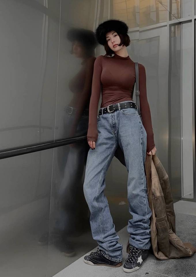 공개한 사진에서 나나는 포근한 샤프카 햇에 브라운 컬러의 밀착 터틀넥 입고 루즈핏 데님 팬츠를 매치해 자연스러우면서도 쿨한 스트릿 무드를 완성했다.