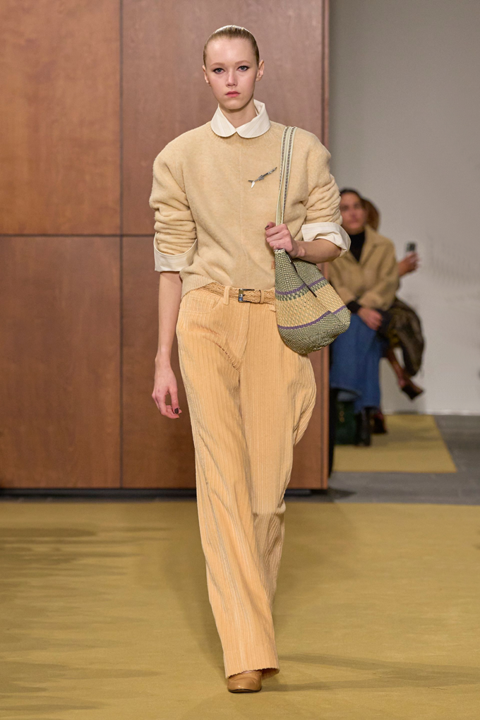 아버지의 옷에서 영감을 받은 낡은 코듀로이 팬츠는다양한 기법과 비율의 조화가 돋보였으며 셰틀랜드산 울 스웨터는 브러싱과 워싱 처리되어 가볍고 부드러운 촉감을 자랑했다.