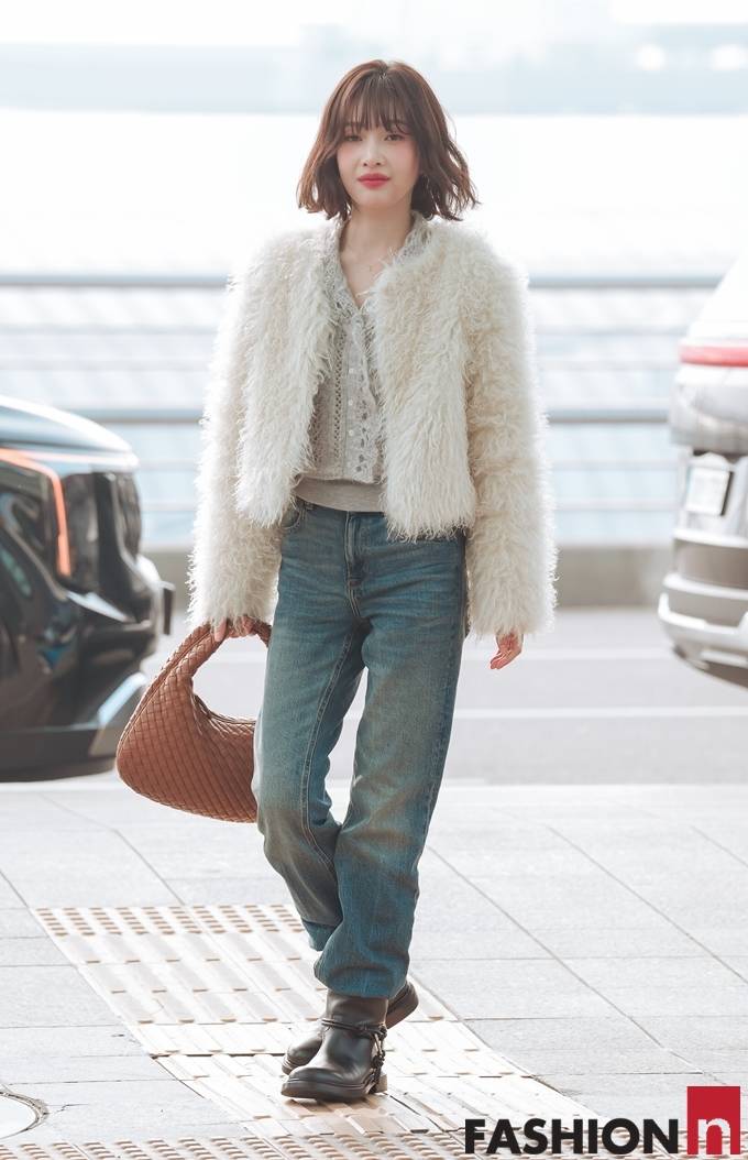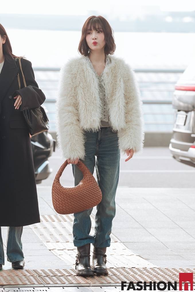 [패션엔 포토] 레드벨벳 조이, 복슬복슬 러블리! 볼륨 퍼 볼레로 재킷 태국 출국길