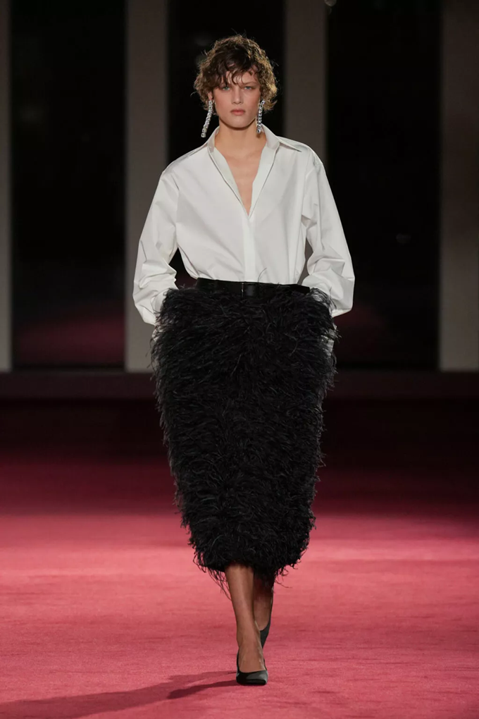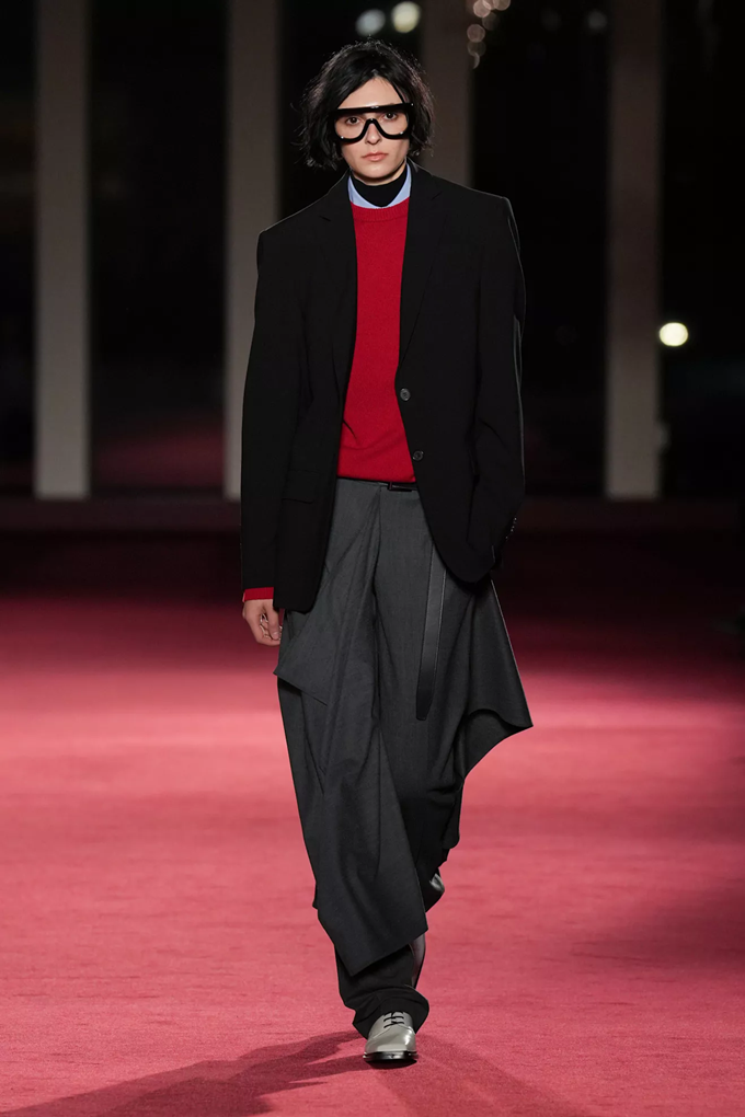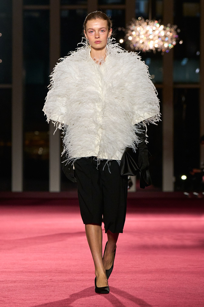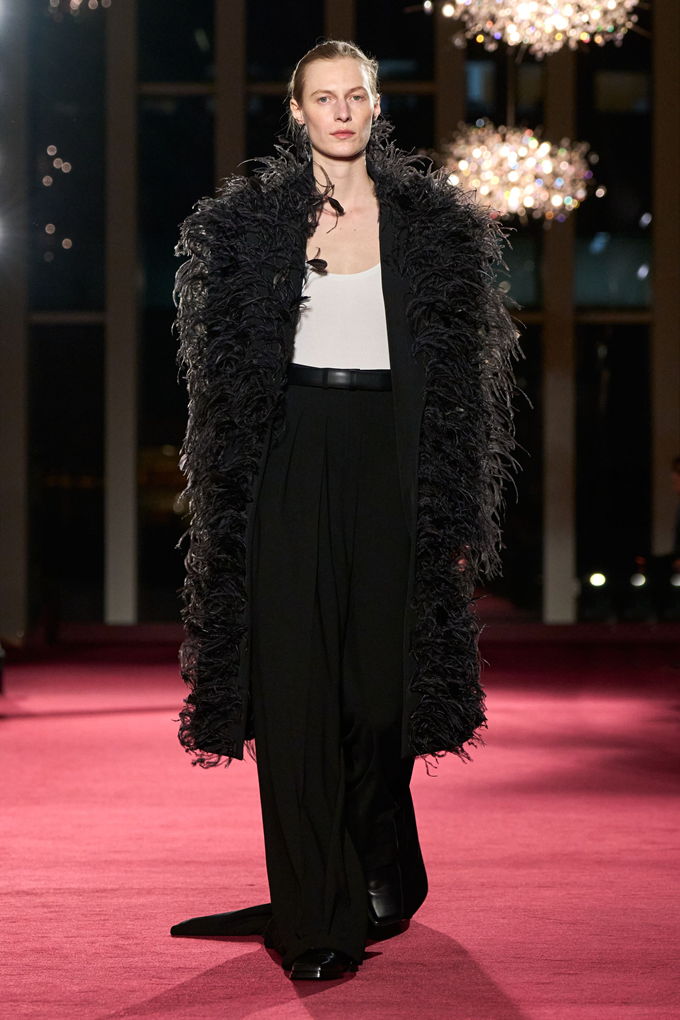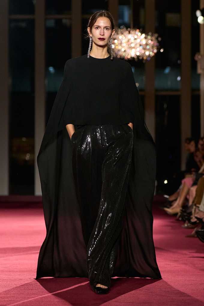 이브닝웨어는 트레인 디테일의 트라우저와 드레스, 남성복에서 영감받은 셔츠, 화려한 자수 등을 통해 거침과 화려함 사이의 균형을 조화롭게 풀어냈다.