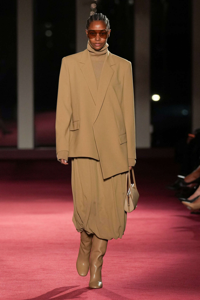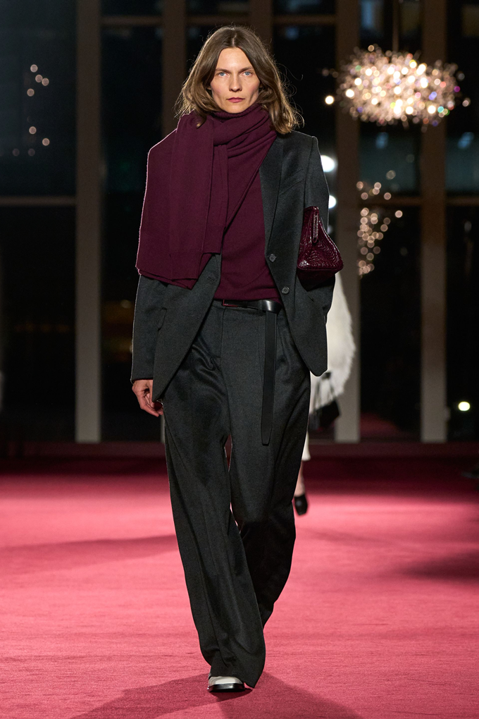 컬러 팔레트는 이번 시즌 ‘폰(fawn)’이라는 이름으로 선보인 시그니처 카멜 컬러와 어반 뉴트럴을 중심으로, 루비·라즈베리·와인 등 강렬한 색조가 포인트로 더해졌다.
